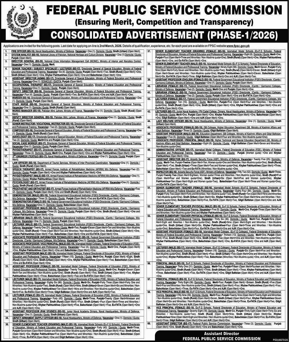 📌 Federal Public Service Commission Jobs 2026 Latest Advertisement